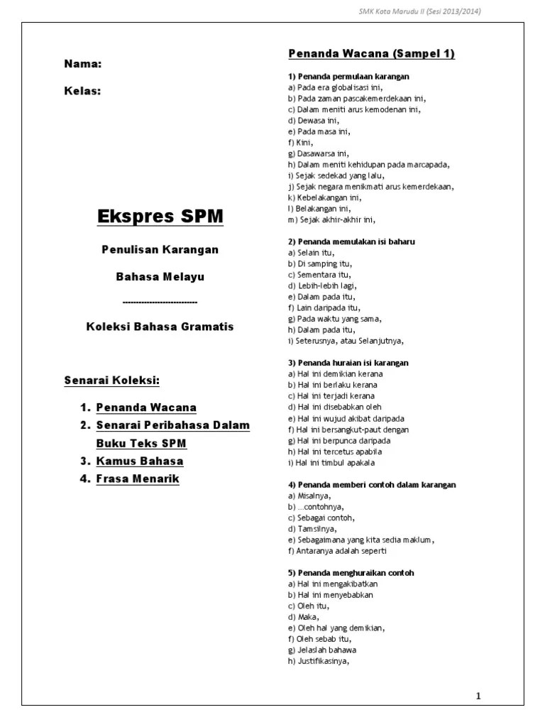 Penanda wacana english free download as word doc (.doc.docx), pdf file (.pdf), text file (.txt) or read . Penanda wacana bahasa inggeris google search essay writing skills okay,. List of discourse markers (penanda wacana) adding (menambah) and (dan) also (juga) as . Penanda wacana / discourse markers contoh / examples: Contextual translation of penanda wacana bahasa into english. Wacana discourse markers contoh examples: